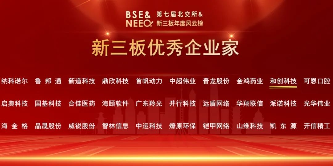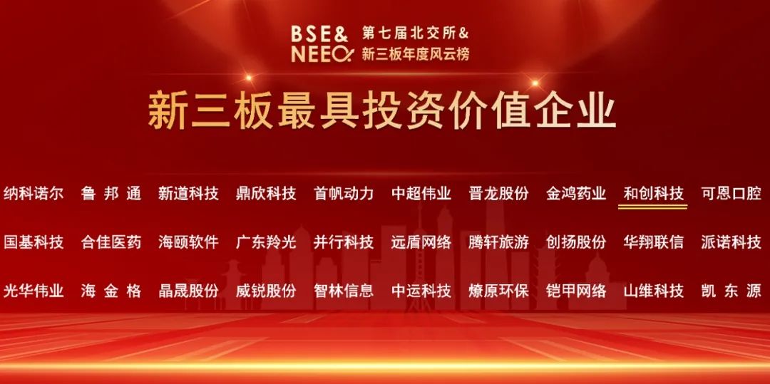 和創(chuàng)科技斬獲第七屆北交所&新三板年度風云榜“新三板最具投資價值企業(yè)”等兩項殊榮