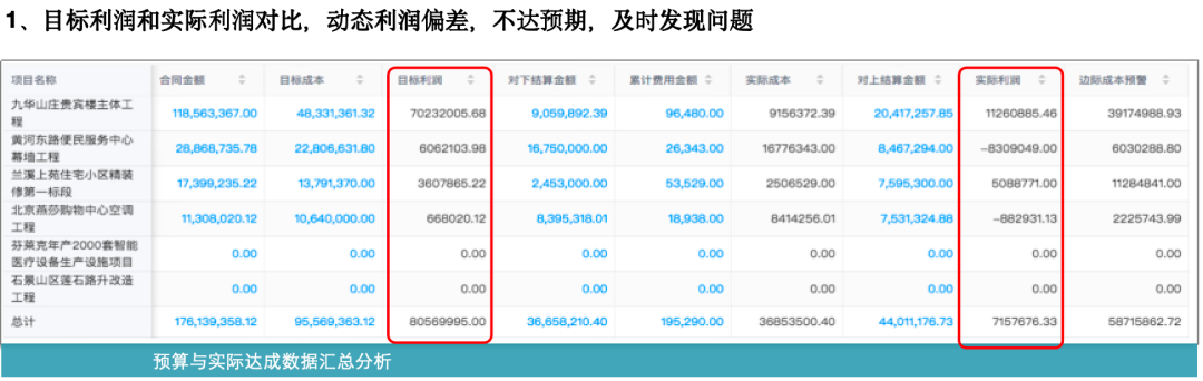 目前項(xiàng)目利潤(rùn)較穩(wěn)定,但是有些項(xiàng)目管不好還是會(huì)有一些虧損。公司在投標(biāo)之前就會(huì)做預(yù)算,但是在施工過(guò)程中如果管控不到位,就不知道虧錢到底虧在哪里,賺錢賺在哪里,只能項(xiàng)目結(jié)束了才知道賺還是虧。