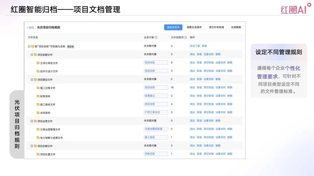AI可根據(jù)遵循每個企業(yè)個性化管理要求,針對不同項目類型設(shè)定不同的文件管理標準;