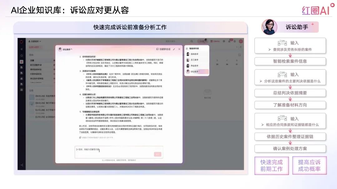 面對工程糾紛突發(fā)性強、資料復雜的挑戰(zhàn),紅圈AI構(gòu)建訴訟智庫,協(xié)助法務(wù)快速調(diào)閱判例、合同、律師函、內(nèi)部分析等核心資料,高效支撐應(yīng)訴與風險防控。