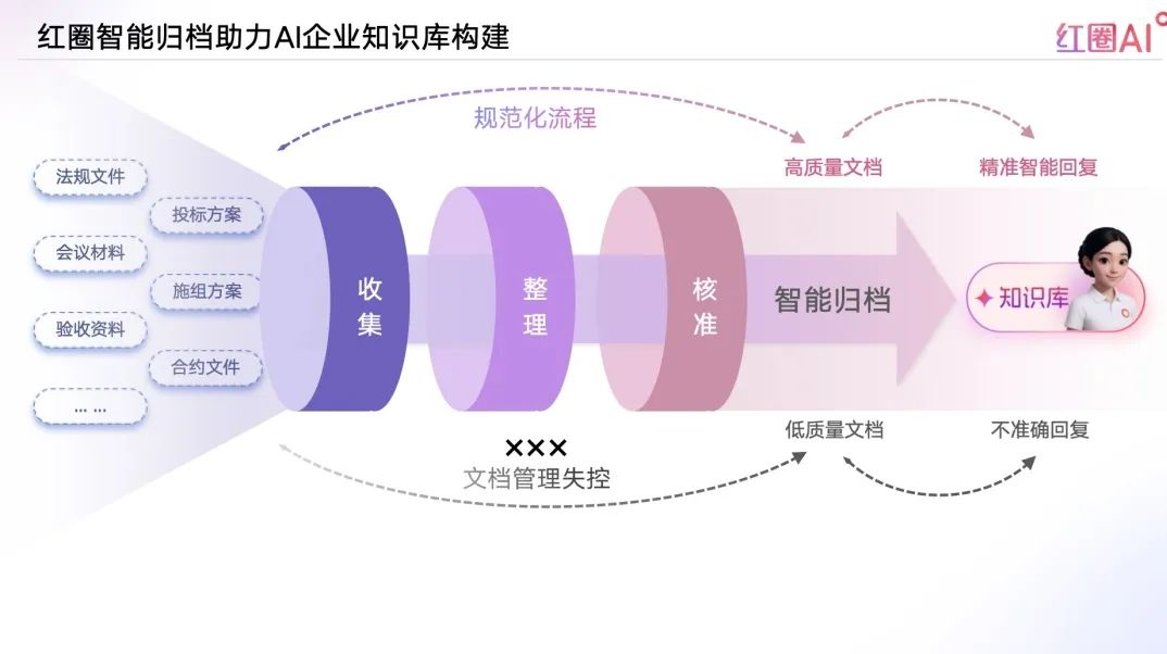 通過精準分類、統(tǒng)一歸集、秒級同步,紅圈AI幫助企業(yè)在最短時間、最低成本內(nèi)構(gòu)建企業(yè)級知識體系,實現(xiàn)知識管理智能化、資產(chǎn)化、標準化。