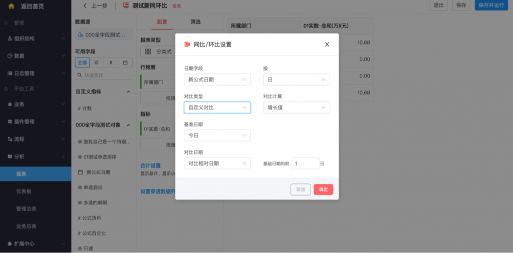 - 無(wú)時(shí)間維度的同環(huán)比設(shè)置,增加了自定義對(duì)比計(jì)算(相對(duì)日期和固定日期)