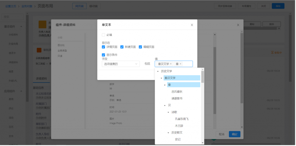 1)選項值集的適用性提升,如顯示條件,篩選支持多選等