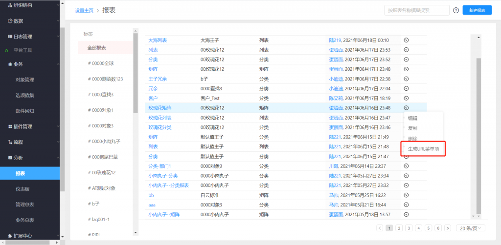 報表可以創建菜單項,支持在前臺快速訪問