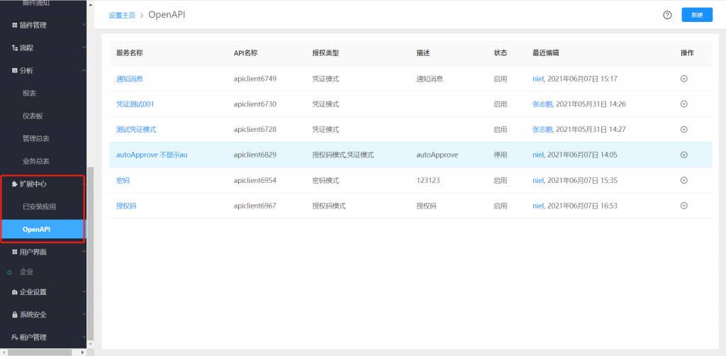 OpenAPI在功能開通后,用戶可以在后臺自行創建連接,生成密鑰