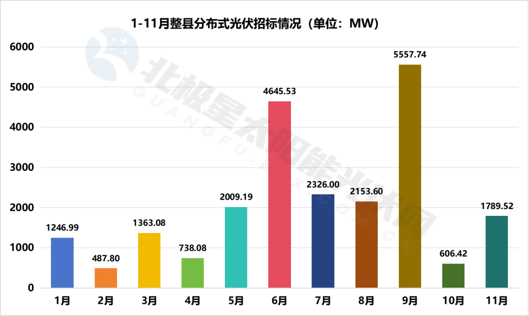 與之對(duì)應(yīng)的是,今年各整縣光伏EPC招投標(biāo)在大量上馬,據(jù)北極星太陽光伏網(wǎng)不完全統(tǒng)計(jì):1-11月各地公開的整縣EPC招標(biāo)規(guī)模300余個(gè),合計(jì)規(guī)模約23GW,基本覆蓋了大部分省份。