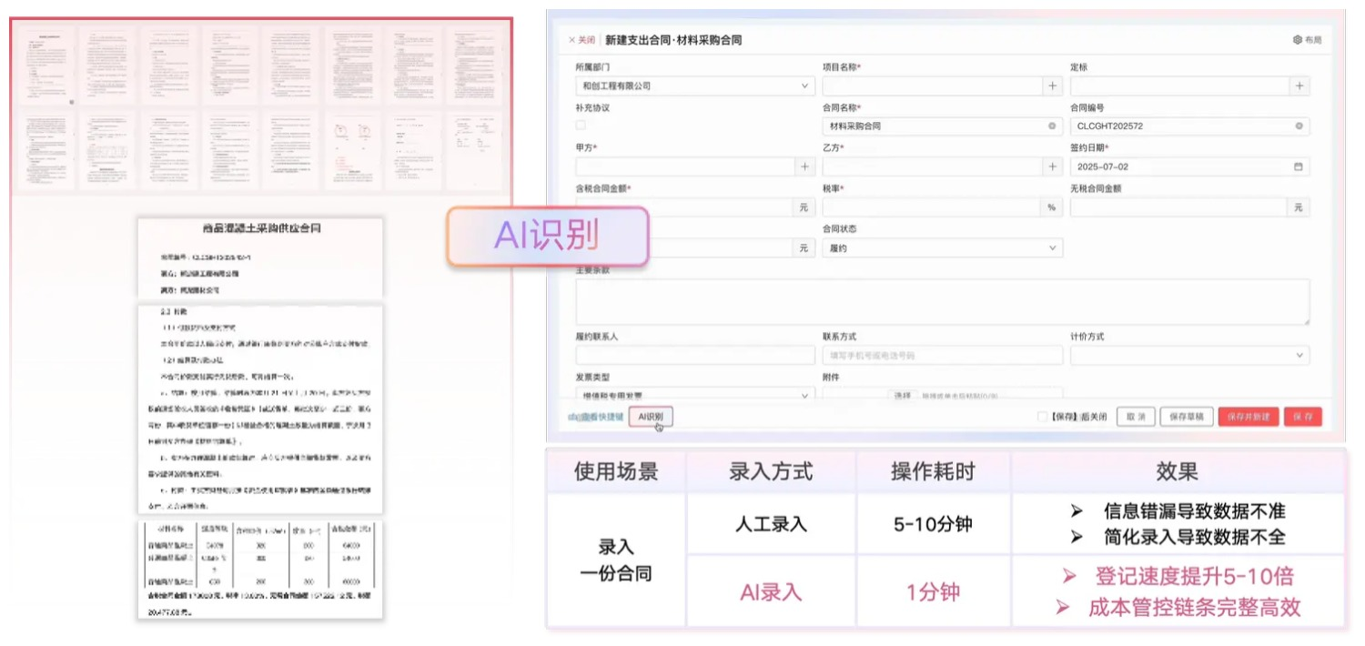 從投標(biāo)那一步起,紅圈就開(kāi)始幫你把關(guān)了。比如篩選供應(yīng)商這事兒,以前全靠經(jīng)驗(yàn)判斷,現(xiàn)在紅圈采購(gòu)助理Agent可以從多個(gè)維度給供應(yīng)商做數(shù)據(jù)畫(huà)像,用AI算法動(dòng)態(tài)打分,誰(shuí)靠譜誰(shuí)有坑,一眼就能看明白。還能從基本信息、法律訴訟、天眼風(fēng)險(xiǎn)、失信人、企業(yè)年報(bào)、稅務(wù)評(píng)級(jí)這六個(gè)維度,逐項(xiàng)排查風(fēng)險(xiǎn),結(jié)合行業(yè)里成熟的管理模型,綜合算出一個(gè)風(fēng)險(xiǎn)分。到了施工階段,物資進(jìn)進(jìn)出出、勞務(wù)天天記賬,更是容易亂。紅圈系統(tǒng)能幫你在施工過(guò)程中把成本、物資、資金、進(jìn)度、質(zhì)量安全這些都管起來(lái),讓你隨時(shí)知道項(xiàng)目上的錢(qián)安不安全、有沒(méi)有藏著什么經(jīng)營(yíng)風(fēng)險(xiǎn)。這里頭紅圈錄單助手Agent pro特別好用,甭管是混凝土票、機(jī)打送貨單,還是手寫(xiě)單、外文單,拍個(gè)照,大模型就能自動(dòng)識(shí)別、秒級(jí)錄入。還能智能分析這批入庫(kù)材料該掛到哪個(gè)合同下面,把成本發(fā)生的源頭理得清清楚楚,以后想查賬、想溯源,點(diǎn)幾下就全出來(lái)了。這種從投標(biāo)到結(jié)算、從資金到物資的全過(guò)程穿透,讓老板隨時(shí)知道每個(gè)項(xiàng)目的利潤(rùn)達(dá)不達(dá)標(biāo)、成本花得合不合理,真正幫你在項(xiàng)目全周期里降本增效。