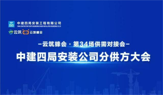 中建四局安裝專場供需對接會暨云筑蜂會·第?34?場供需對接會計劃于 2 月在廣東廣州舉辦,借助本次會議打破供需壁壘,實現四局安裝各合伙分公司及專業事業部采購需求與專業分包分供商的快速匹配